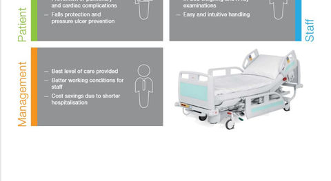 The smart acute bed offering safety without compromise. The ELEGANZA 2 is loaded with patent liquid filled angle indicators & built-in BedMonitor sensors. Ward care is supported with a Smart Monitor system for easy monitoring on pc, tablet or mobile phone.