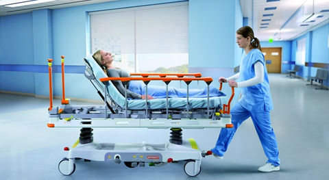 Our transport stretcher. SPRINT 100 has the world's first IV poles with integrated push handles. hospital ward & long term care units. Model has a simple construction with a wide range of features & functions delivered at a low cost, providing customers with great value for money. As a result, this model has above-standard features & sophisticated functions available to a large variety of customers.