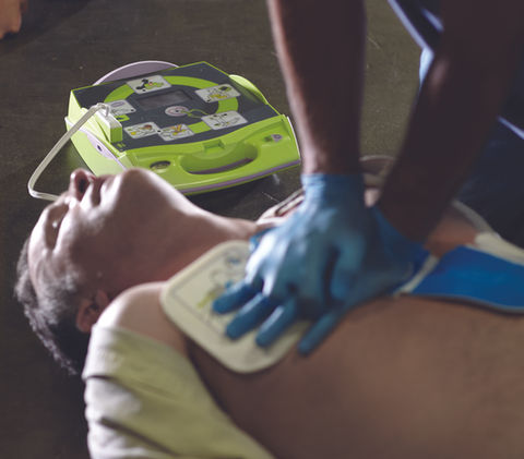 The ZOLL AED Plus is easy & equipped with Real CPR Help technology. A sensor in the pads attached to patient lets the AED see each chest compression & guides to recommended depth & rate of compressions.